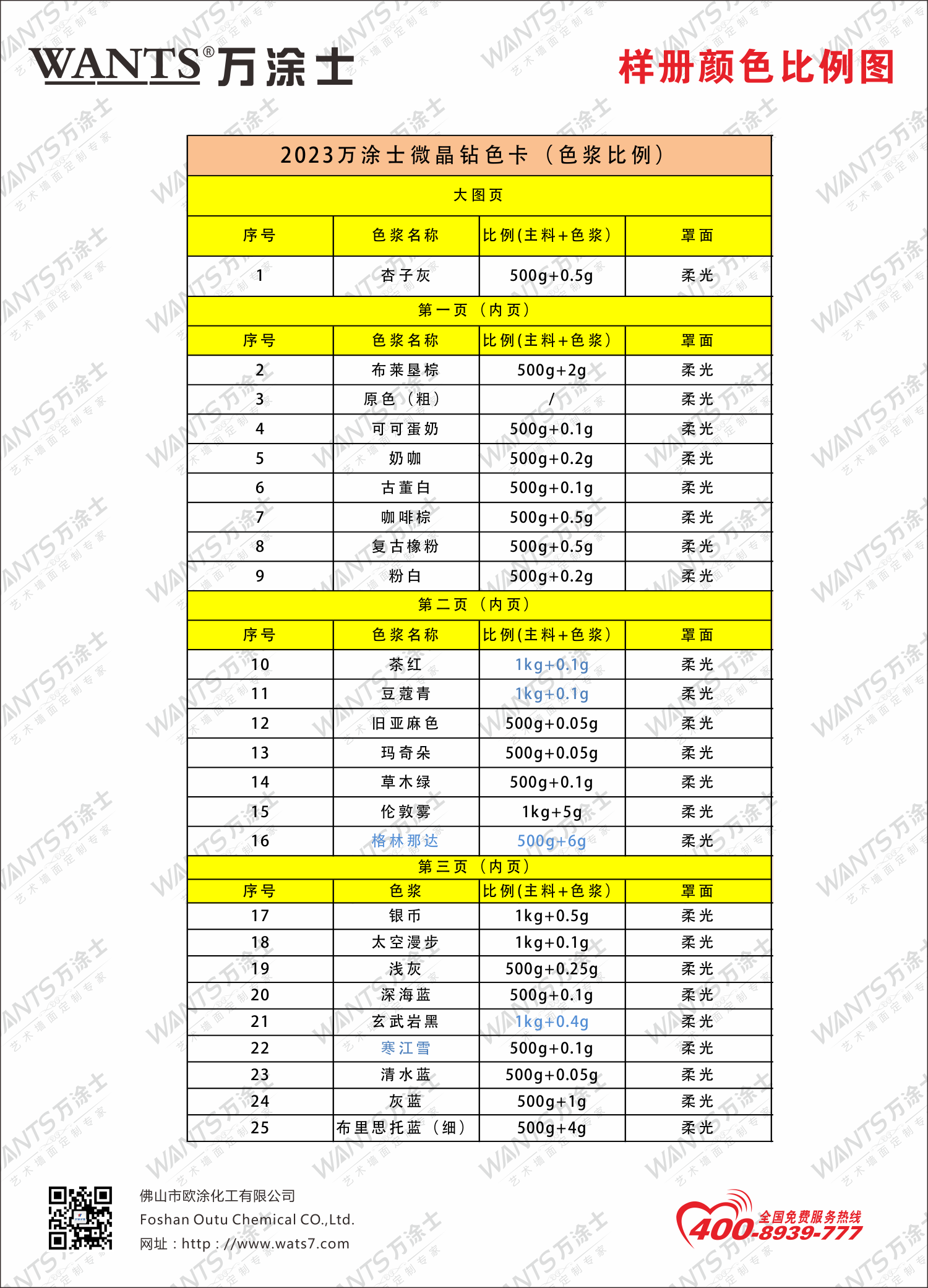 2023万涂士微晶钻色卡比例