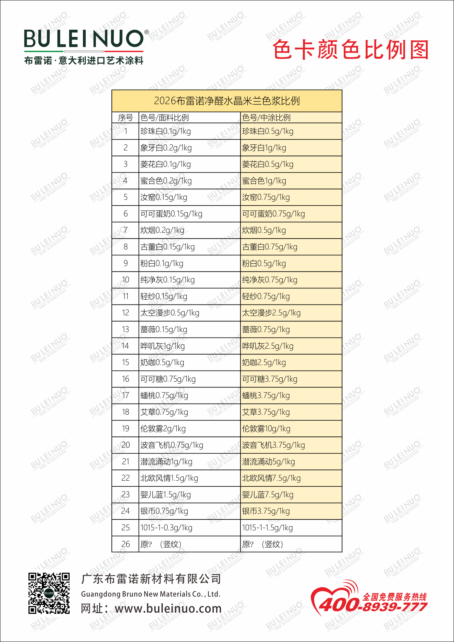 2026布雷诺净醛水晶米兰对翻色卡数据比例